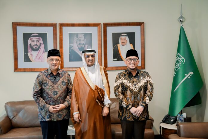 Jakarta-Erabaru.id. Kepala Badan Penyelenggara Haji Republik Indonesia, Gus Irfan Yusuf, bersama Wakil Kepala, Dahnil Anzar Simanjuntak beserta jajaran, melakukan kunjungan resmi ke Kedutaan Besar Kerajaan Arab Saudi di Jakarta. Rombongan diterima langsung oleh Duta Besar Arab Saudi untuk Indonesia, H.E. Faisal Bin Abdullah H. Amodi.