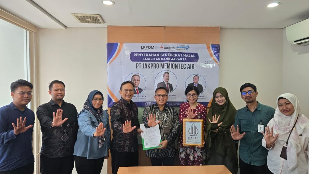 Bank Jakarta, sebagai pihak yang memfasilitasi proses sertifikasi halal, turut memberikan apresiasi. “Bank Jakarta merasa bangga dapat berperan dalam mendukung sertifikasi halal PT Jakpro Memiontec Air. Ini langkah besar dalam memastikan kualitas layanan publik sekaligus menjawab kebutuhan masyarakat,” ujar Mega Triana, Pimpinan KCP Bank Jakarta Pluit.