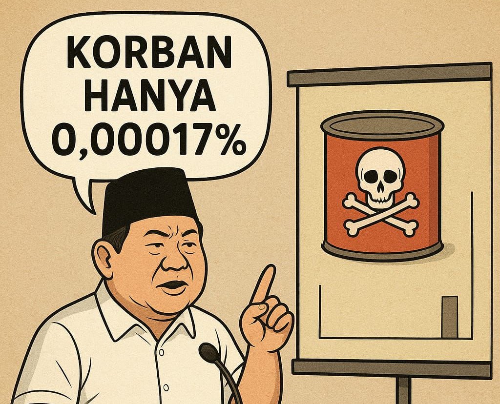 Dengan menyebut “cuma 0,00017% yang keracunan dari 30 juta penerima,” tragedi MBG disepelekan menjadi angka yang tak bermakna. Penderitaan dan kesakitan anak-anak sekolah, serta ketakutan orang tua, seolah lenyap non-eksisten. Statistik bukan dipakai untuk mengungkap kebenaran perkara, melainkan untuk menyumbat kekhawatiran publik.